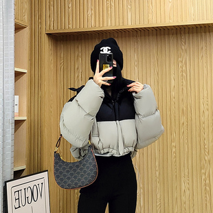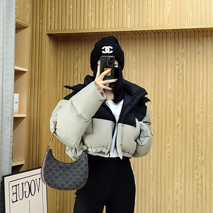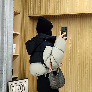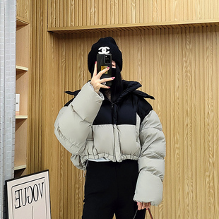 洋气拼接撞色短外套减龄上衣潮 时尚 2025款 95鹅绒加厚羽绒服女冬季