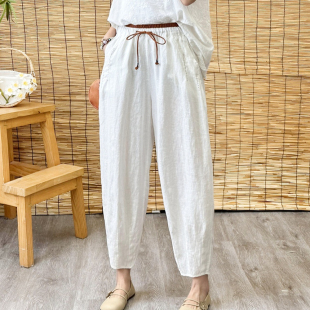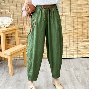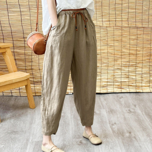 宽松百搭棉麻九分哈伦裤 显瘦减龄亚麻休闲裤 直筒裤 薄款 女2025夏季