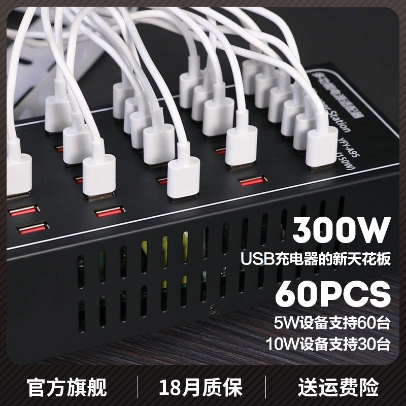 150W 100W大功率10 300W 60口5V2A多口USB充电器多孔多插口手机工作室大功率充电站 200W Kini