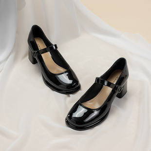 子配裙子淑女伴娘鞋 女粗跟晚风玛丽珍鞋 温柔浅口小方头单鞋 仙女鞋