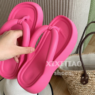 防滑夹脚拖鞋 细细条 时尚 女增高厚底人字拖女外穿夏季 海边沙滩鞋