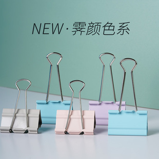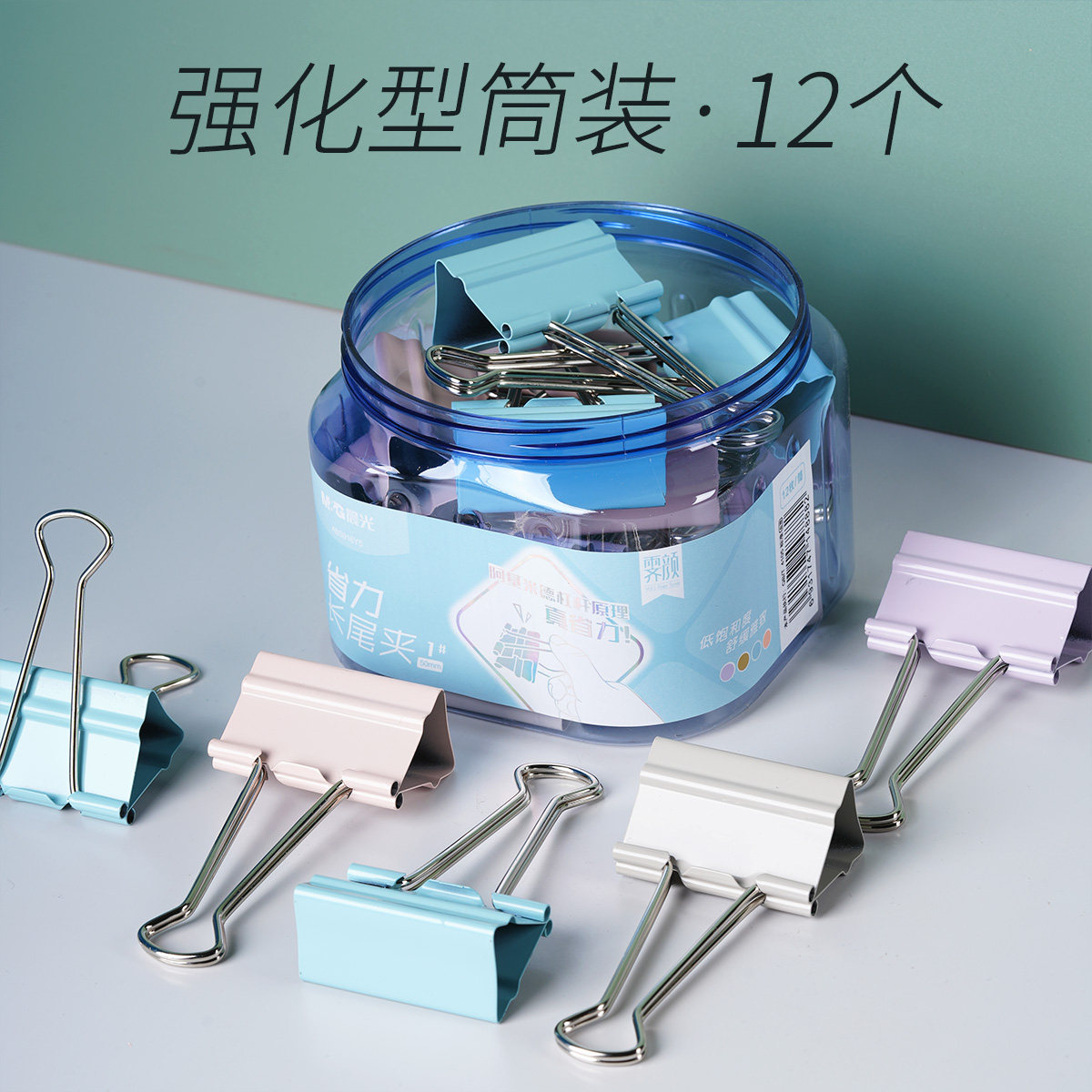晨光莫兰迪色省力长尾夹霁颜潮流杠杆省力型金属票夹创意办公铁夹子整筒12个装 清新复古色系超省力夹ABS916Y5