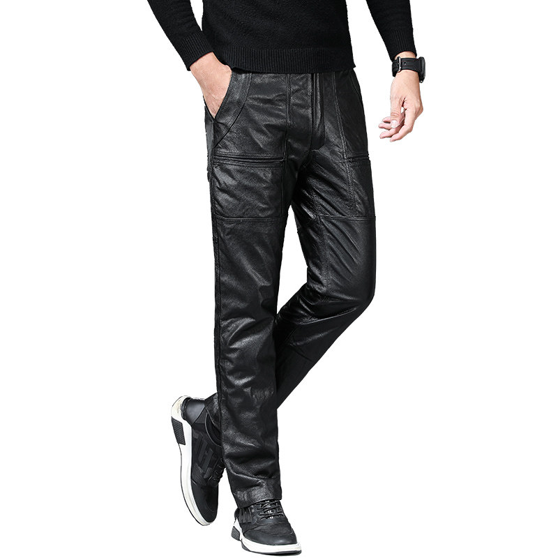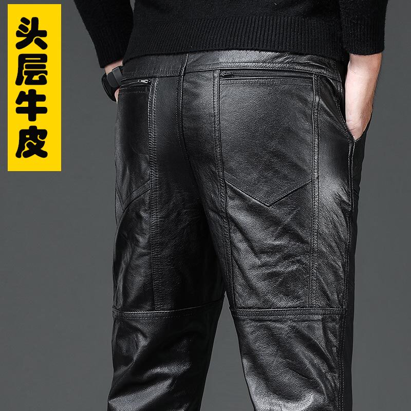 海宁真皮皮裤 头层牛皮可拆卸加绒加厚机车宽松中年保暖摩托车 男士