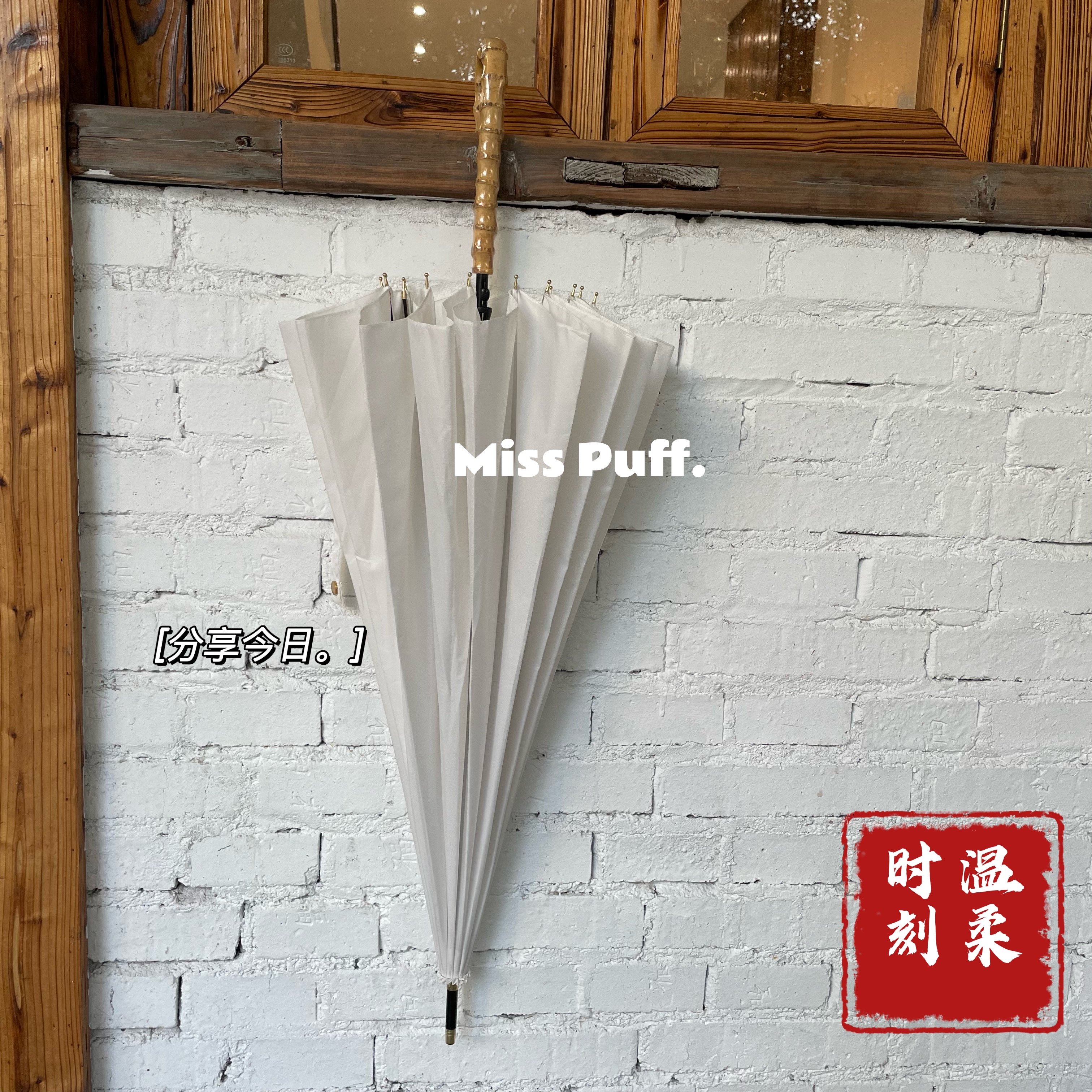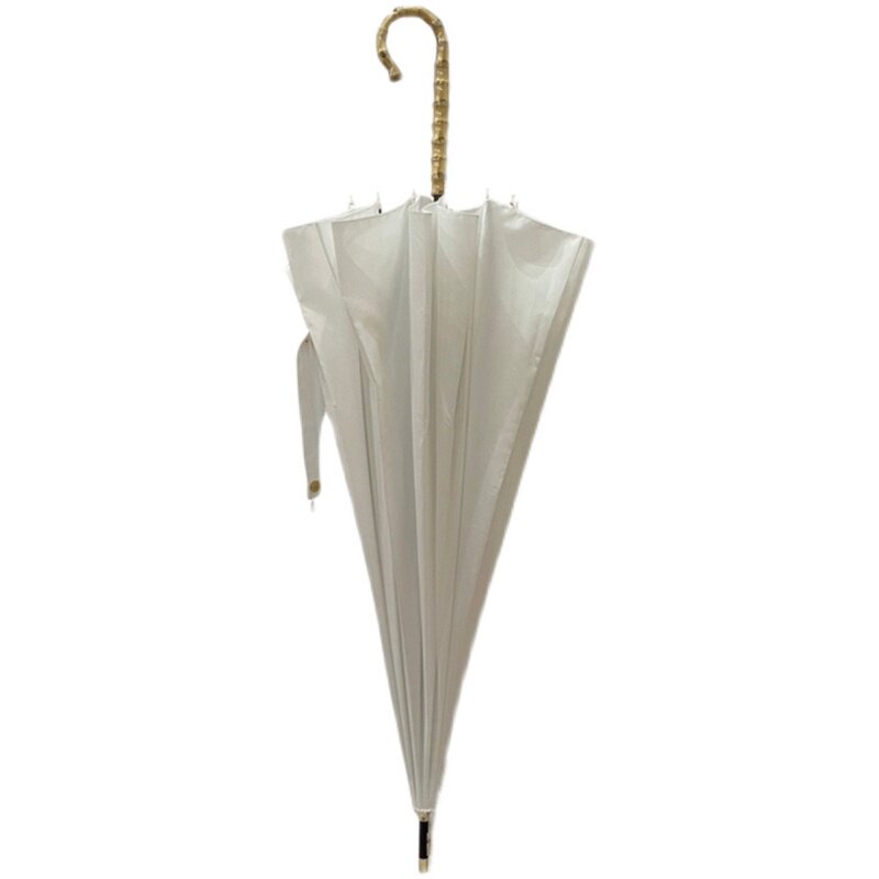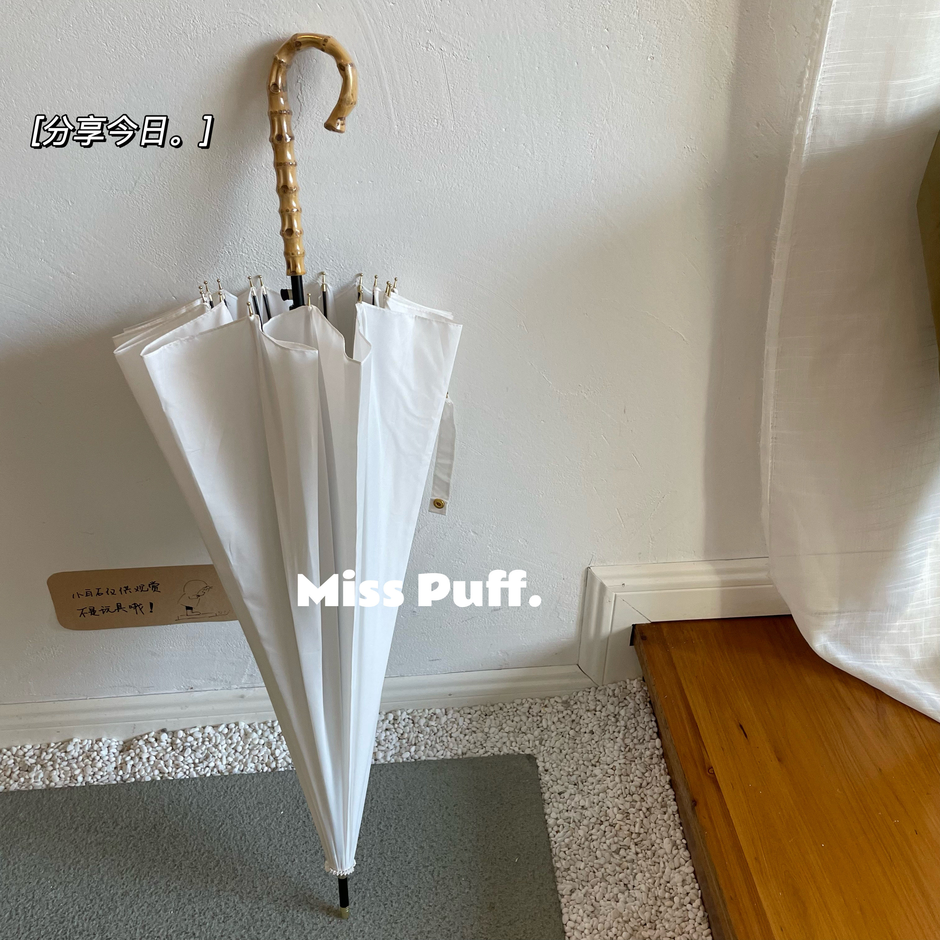 高级感拉满 纯色长柄雨伞男女纯净白原生竹节柄文艺复古拍照抗风