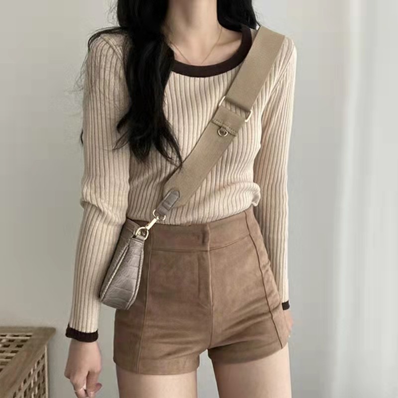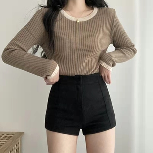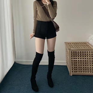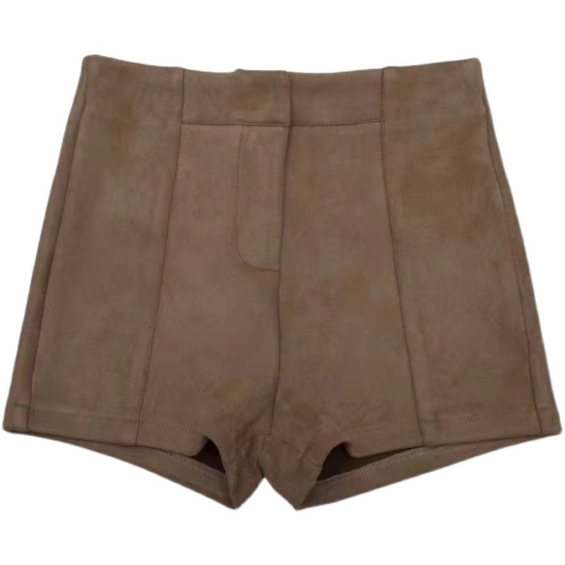 子 高腰紧身包臀黑色休闲裤 棕色鹿皮绒打底短裤 女秋冬外穿2025爆款