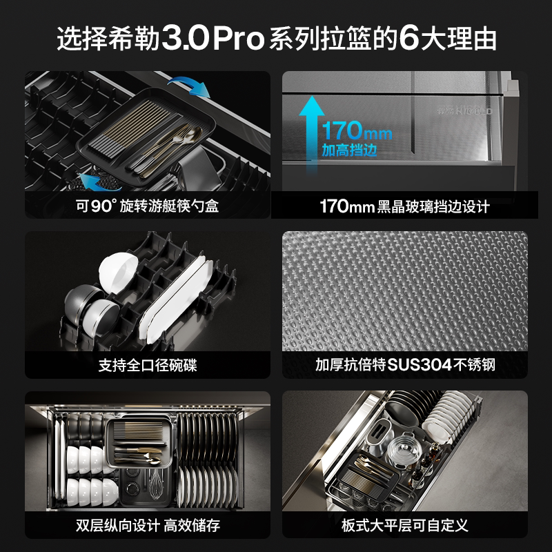 悍高厨房橱柜拉篮希勒3.0Pro双层抽屉式 碗篮304不锈钢调味拉篮