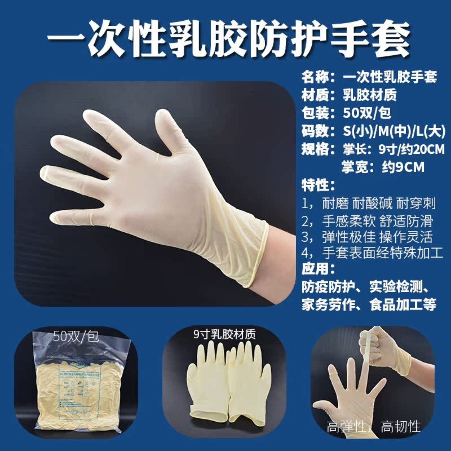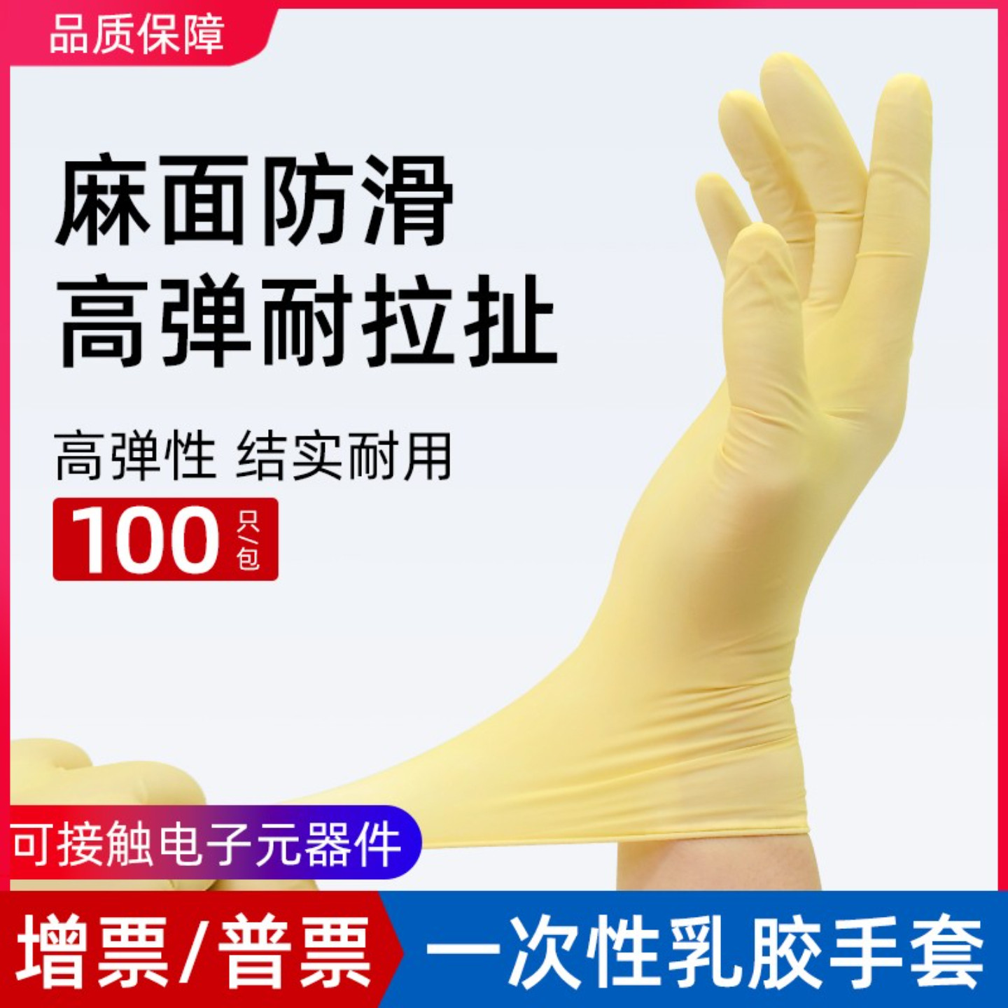 乳胶手套一次性无尘工业无粉净化防静电食品耐污9寸橡胶耐磨检查