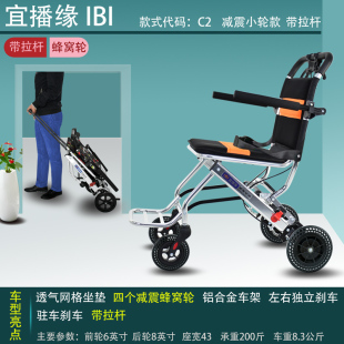 日本IBI超轻折叠拉杆老人轮椅车便携轻便手动残疾手动代步手推车