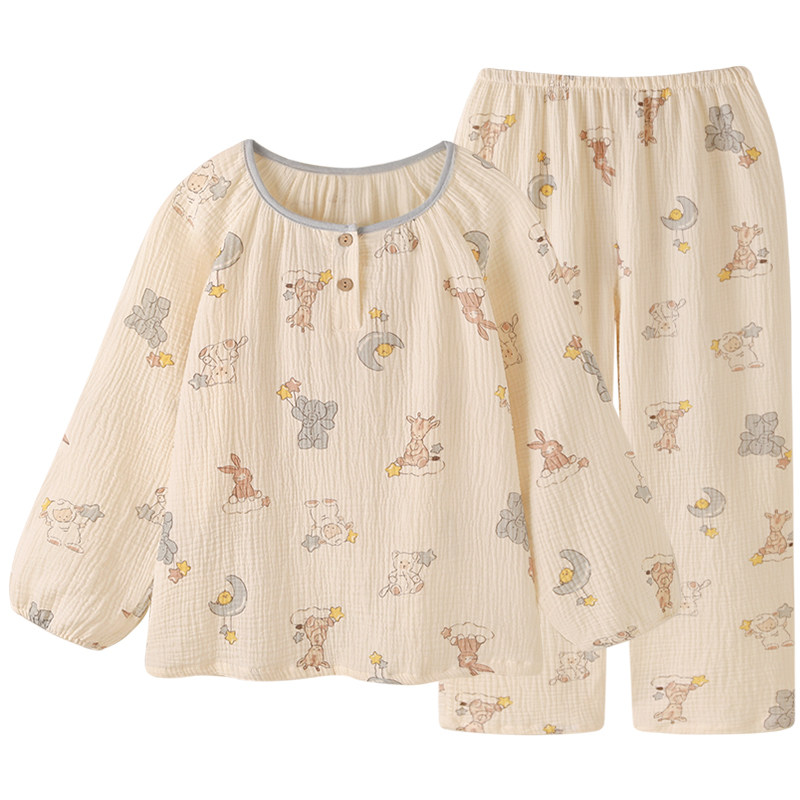 「加倍蓬松」小动物纯棉纱布睡衣女春秋2026年新款 宽松家居服 长袖