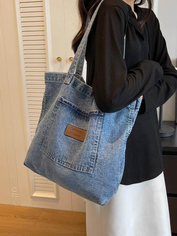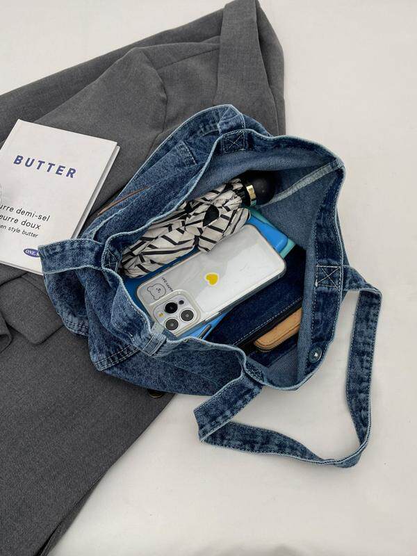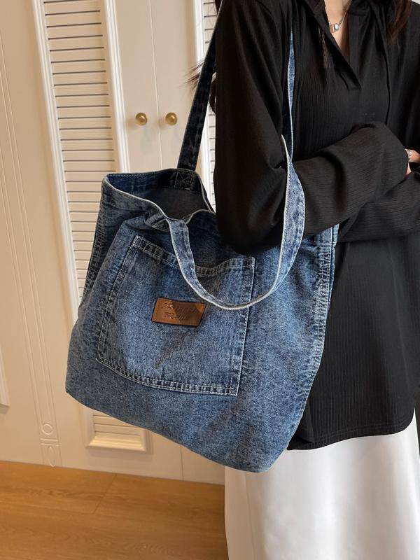 日系简约复古做旧牛仔包设计感日常个性 大容量手提单肩包潮ins女