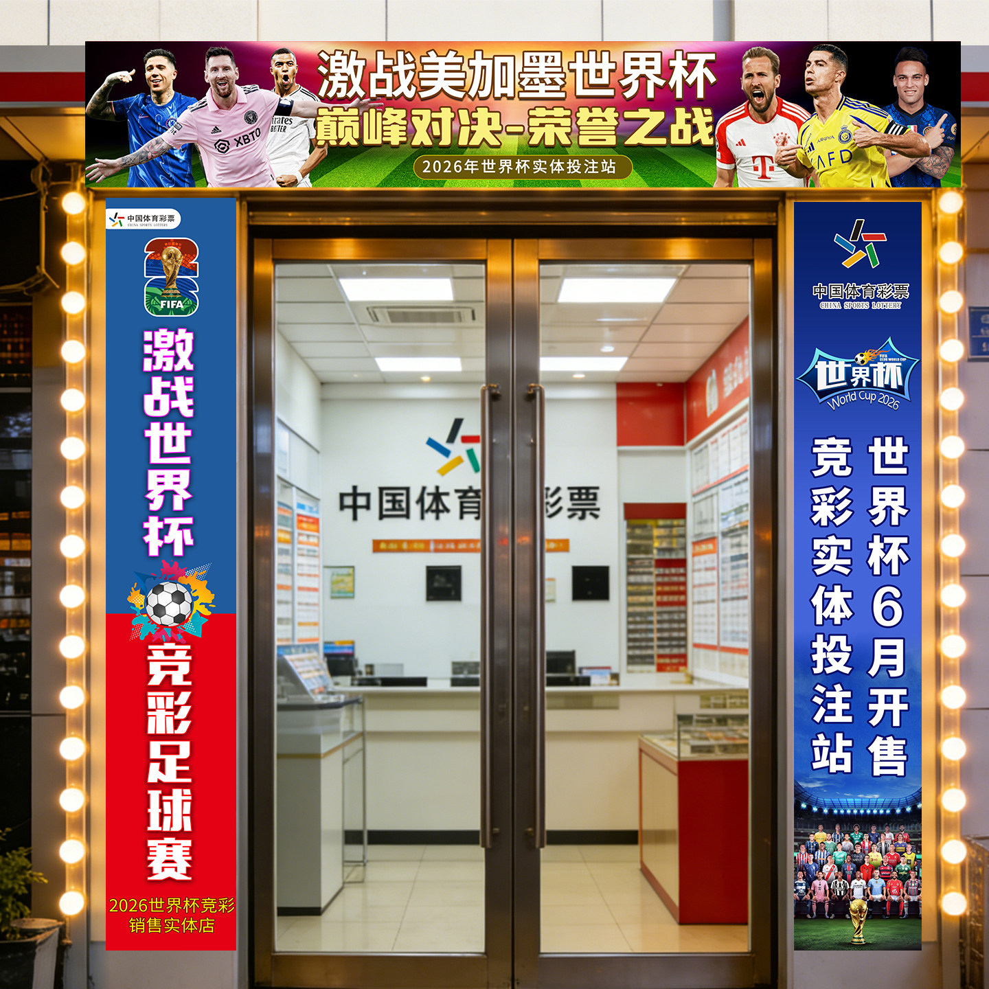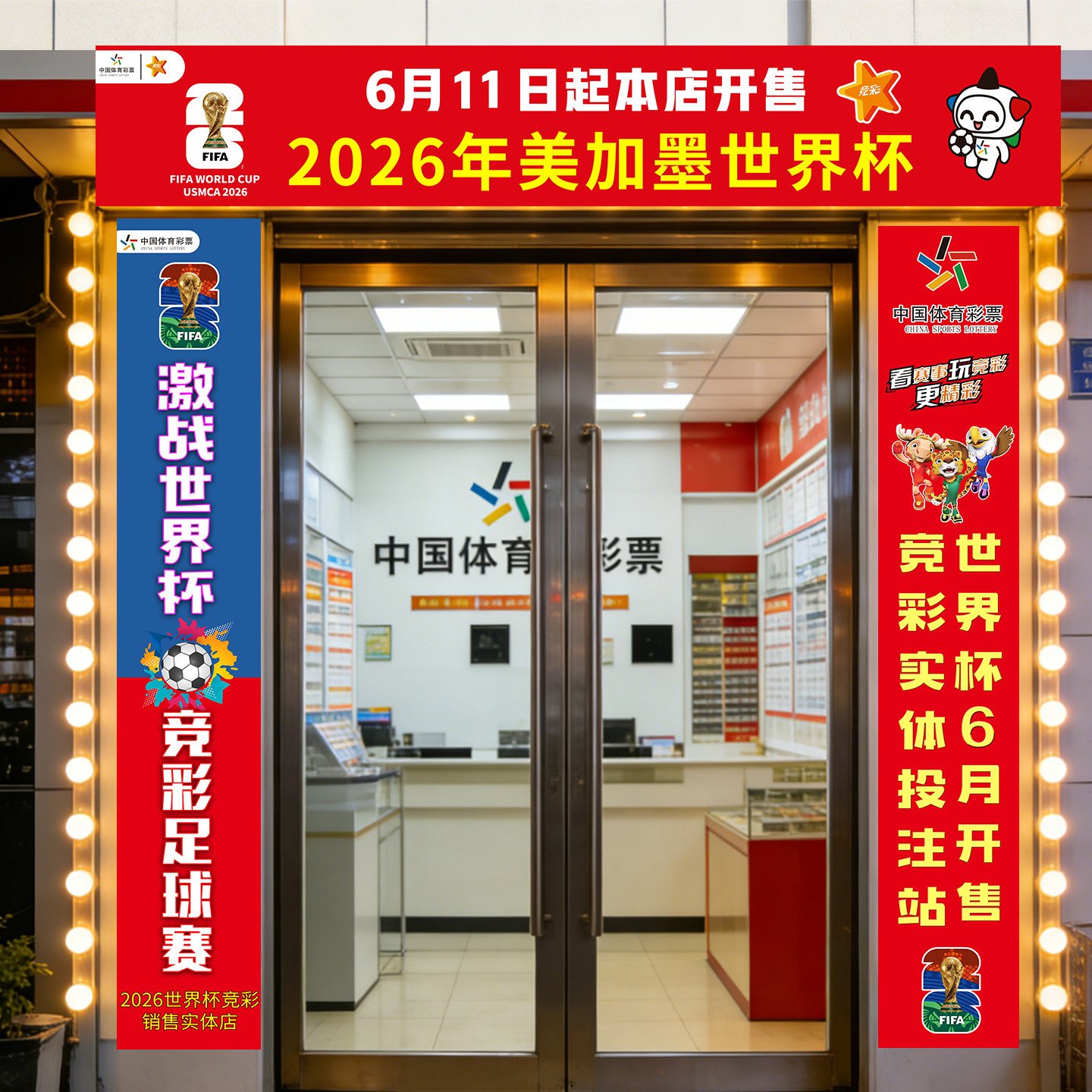 2026美加墨世界杯体彩店背景墙装 饰条幅广告横幅门楣宣传海报门贴