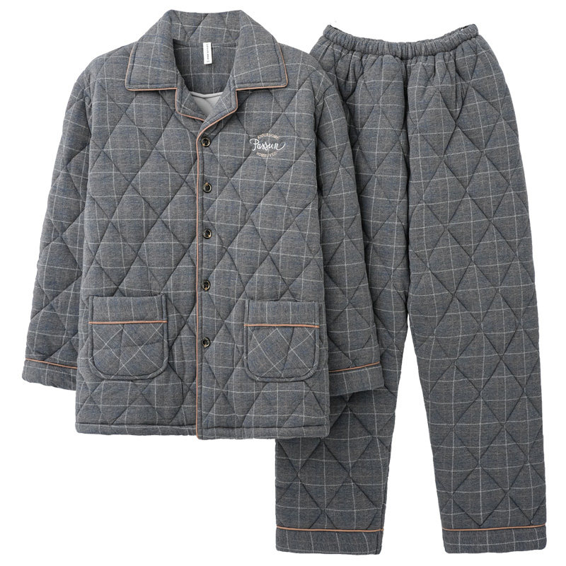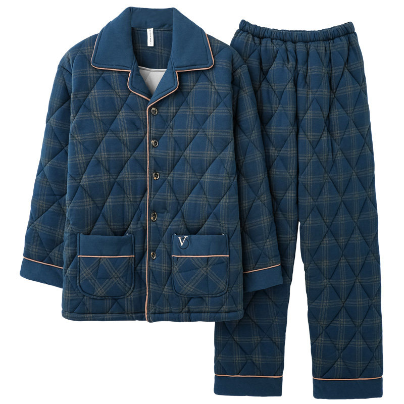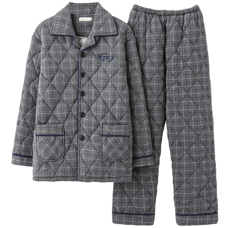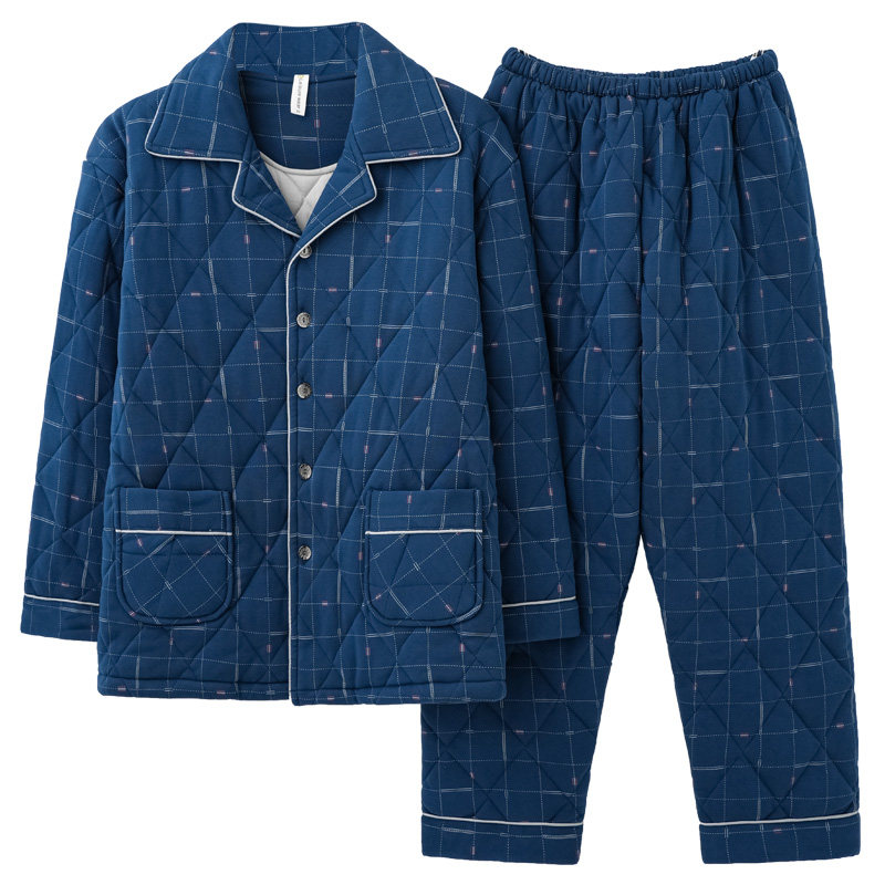男士 居家服套装 睡衣棉袄秋冬款 大码 男式 100%纯棉三层加厚夹棉冬季