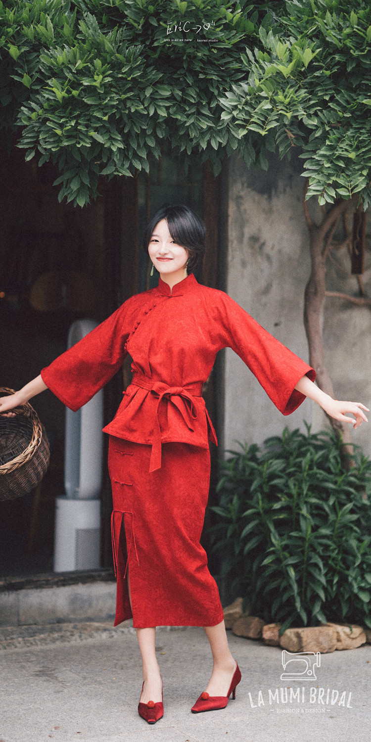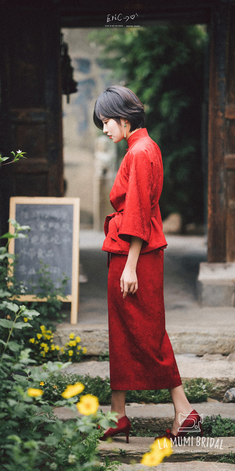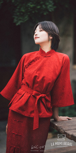 新中式 国风改良旗袍敬酒服回门服新娘平时可穿订婚红色丝绒连衣裙
