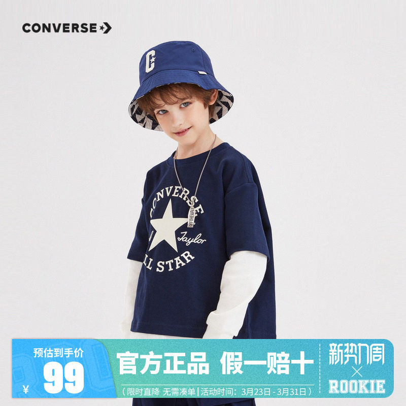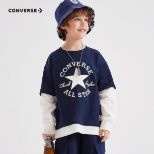 男童假2件上衣打底衫 converse匡威儿童装 新款 T恤2025春季 纯棉长袖