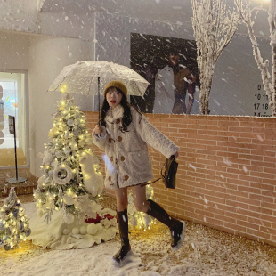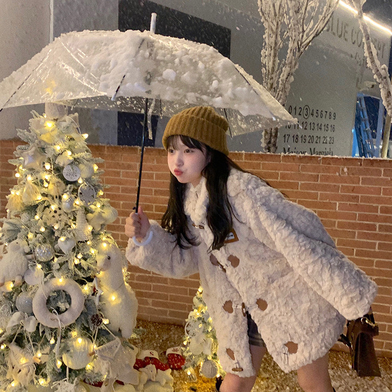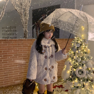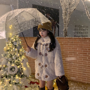 2025冬小个子牛角扣宽松毛茸茸保暖减龄皮毛羊羔绒皮草外套大衣潮