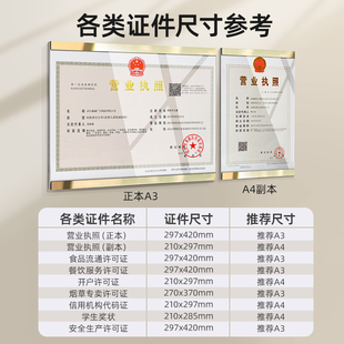 营业执照框架挂墙免打孔食品经营卫生许可证展示框证书相框公示栏