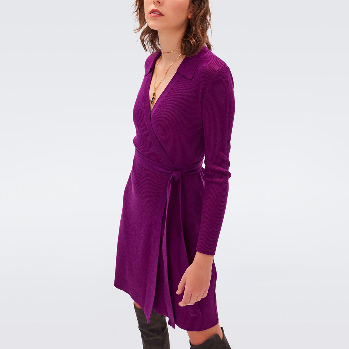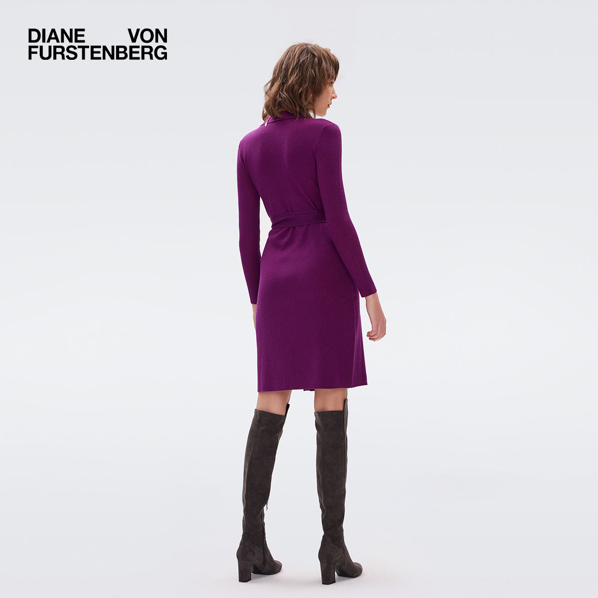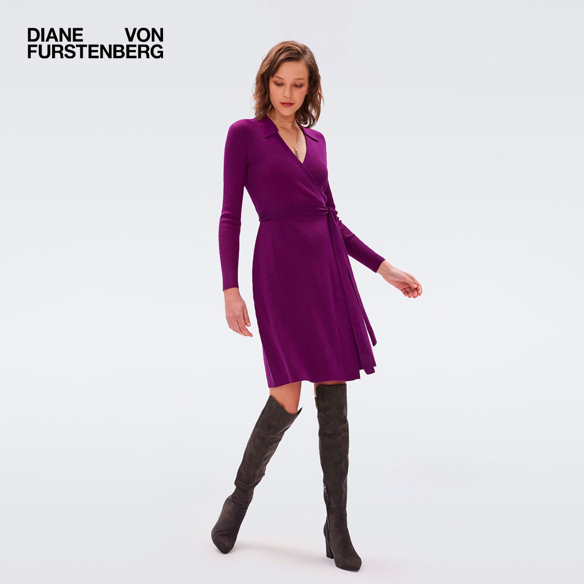 V领毛衣裙紫罗兰短款 DVF 裹身连衣裙DR3R001 博主同款