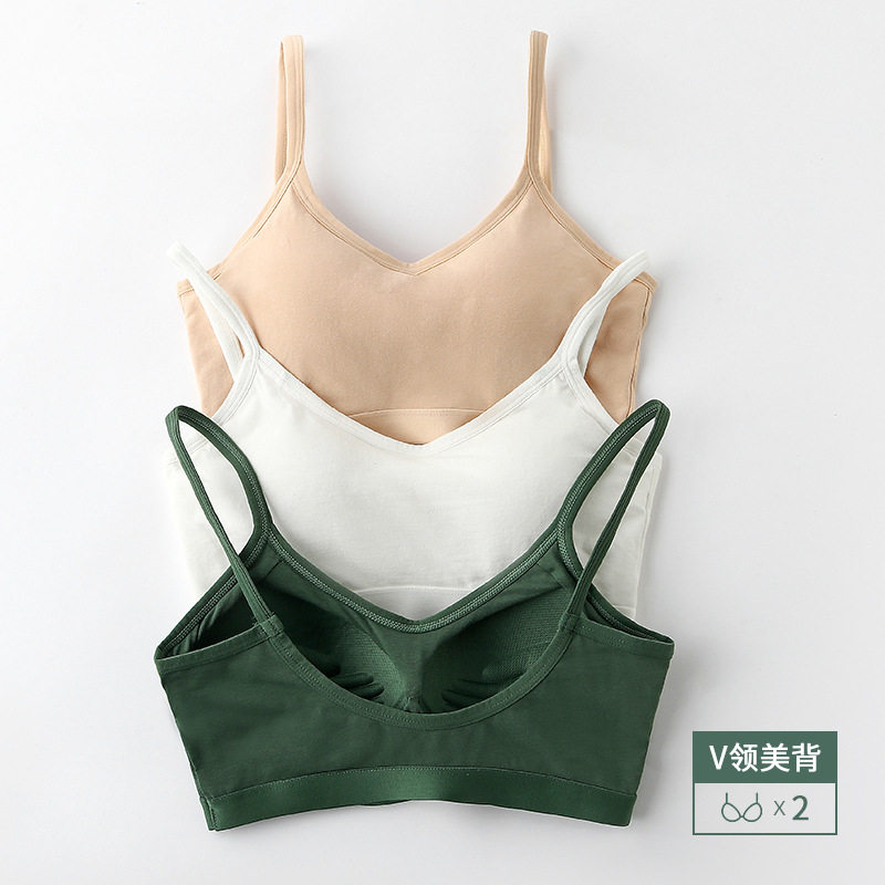 纯棉内衣女抹胸吊带美背固定胸垫无钢圈裹胸防走光运动背心式 文胸