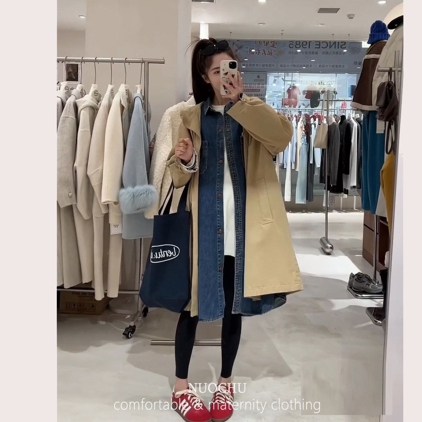 连帽工装 高品质韩代 宽松休闲卡其中长款 风衣春装 上衣外套 孕妇装