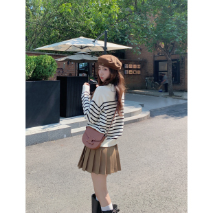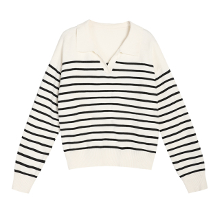 韩版 polo翻领条纹毛衣女秋冬新款 宽松上衣 现货7.5折 MULVAN