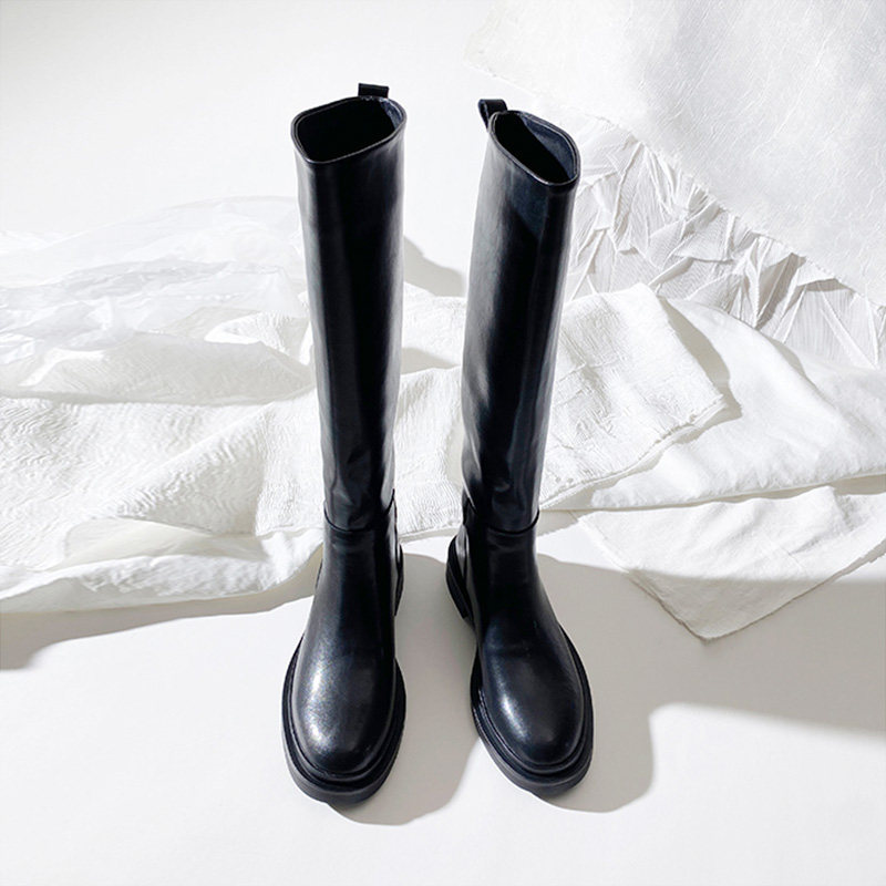 不过膝高筒靴圆头长靴骑士靴小个子 女靴时尚 莲花府邸2025冬季 新款