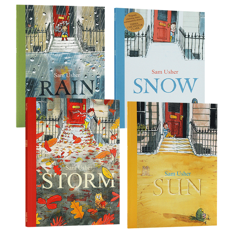 晴天 水彩画风 英文原版 暴风 Storm Rain Sam 自然系列 雪 Usher 英文版 Sun 儿童英语图画故事书 Snow 气候绘本4册 进口书籍 雨水