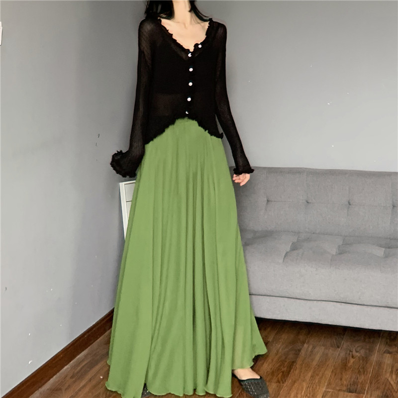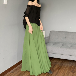 冰丝雪纺大摆舞蹈裙子 藏肉显瘦伞裙 读衣术半身裙加长款 夏到脚踝