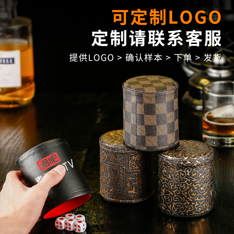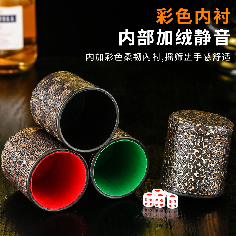 消音筛盅 KTV酒吧色子绒 静音色盅 消音高档无声皮革骰盅骰子套装
