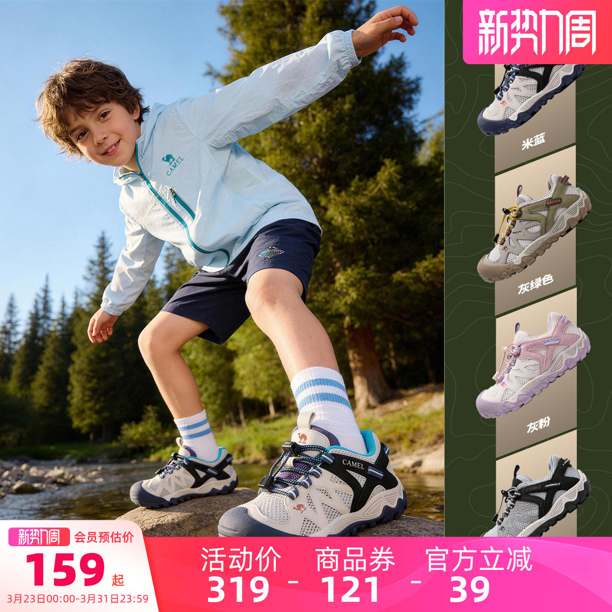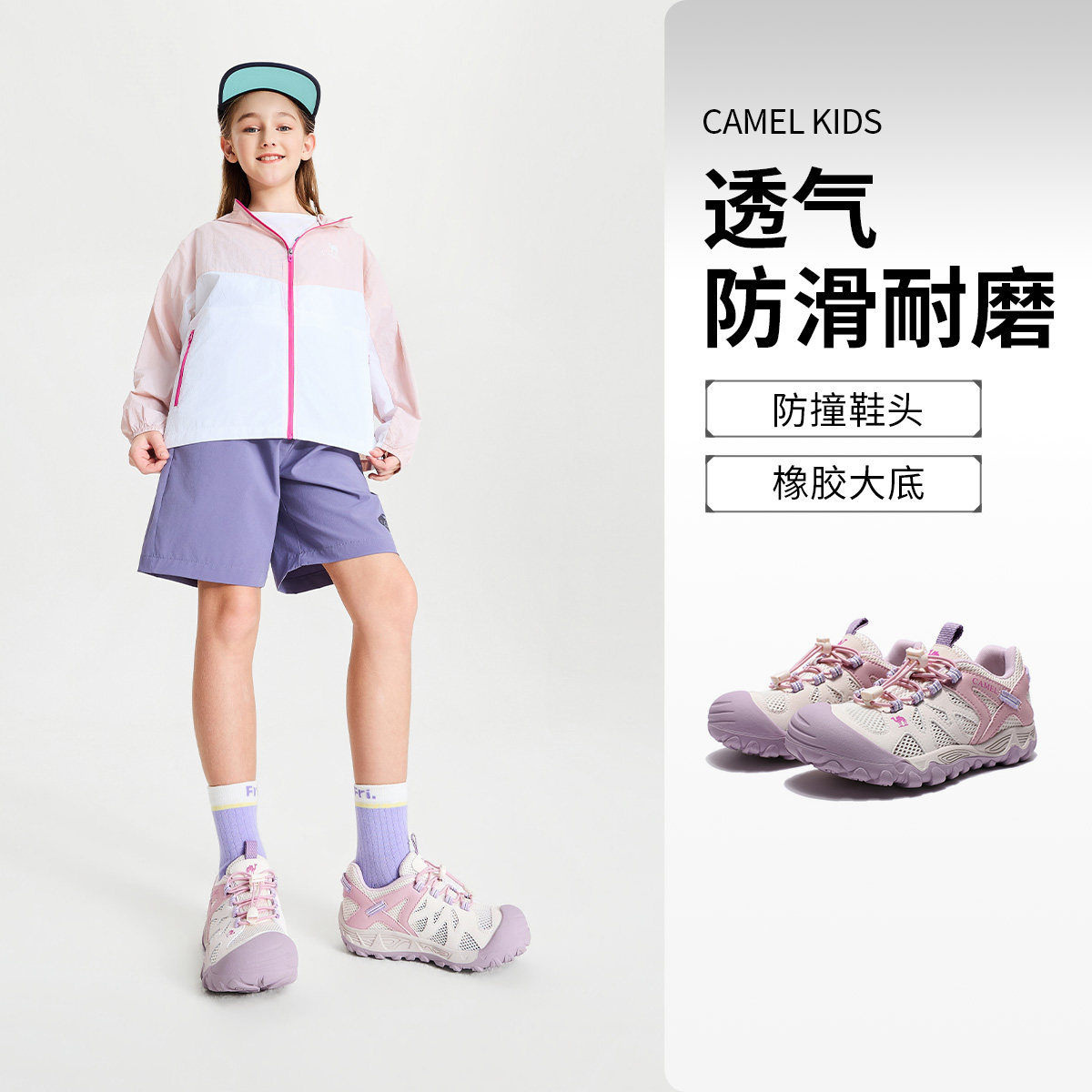 男童运动鞋 小骆驼儿童登山鞋 轻盈户外防滑耐磨网面透气大童徒步鞋