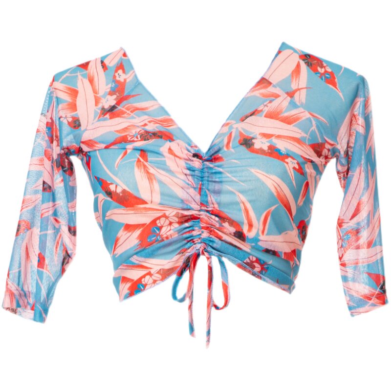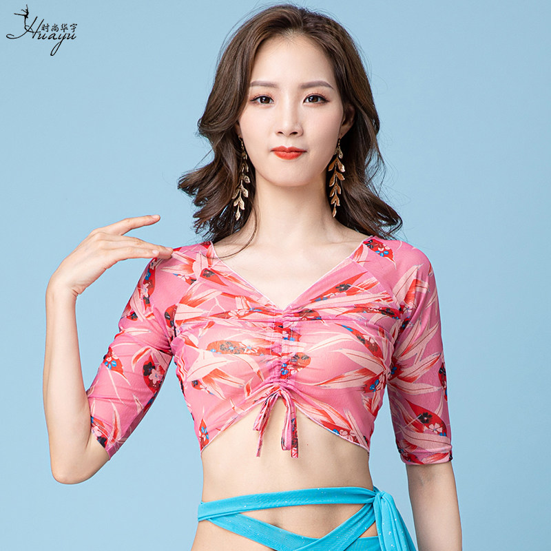 肚皮舞上衣夏季 练功服性感显瘦抽绳纱衣遮肚子东方舞蹈表演服仙女