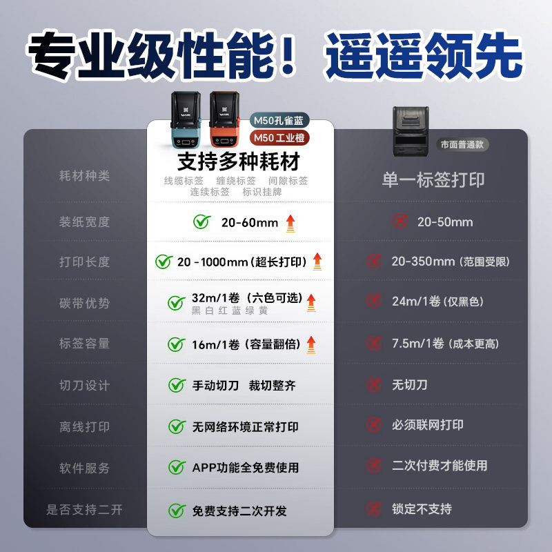贴博士M50通信线缆空开标签打印机蓝牙便携式 机弱电机房网络网线不干胶贴纸标签机 手持小型打标机电线打码