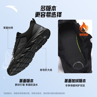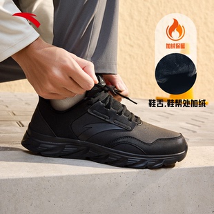 男鞋 黑色皮面防水跑步鞋 冬季 保暖中年爸爸鞋 子 男士 鸿星尔克运动鞋
