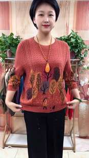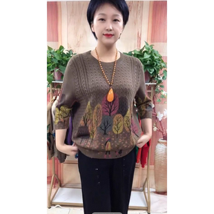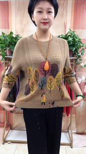 春秋季 花色宽松时尚 圆领 C341中老年妈妈装 2025年小森林外贸针织衫