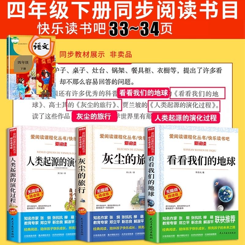 旅行高士其人类起源 书籍快乐读书吧四下书目灰尘 演化过程穿越 地球李四光穿过地平线四年级下册阅读课外书必读正版 看看我们