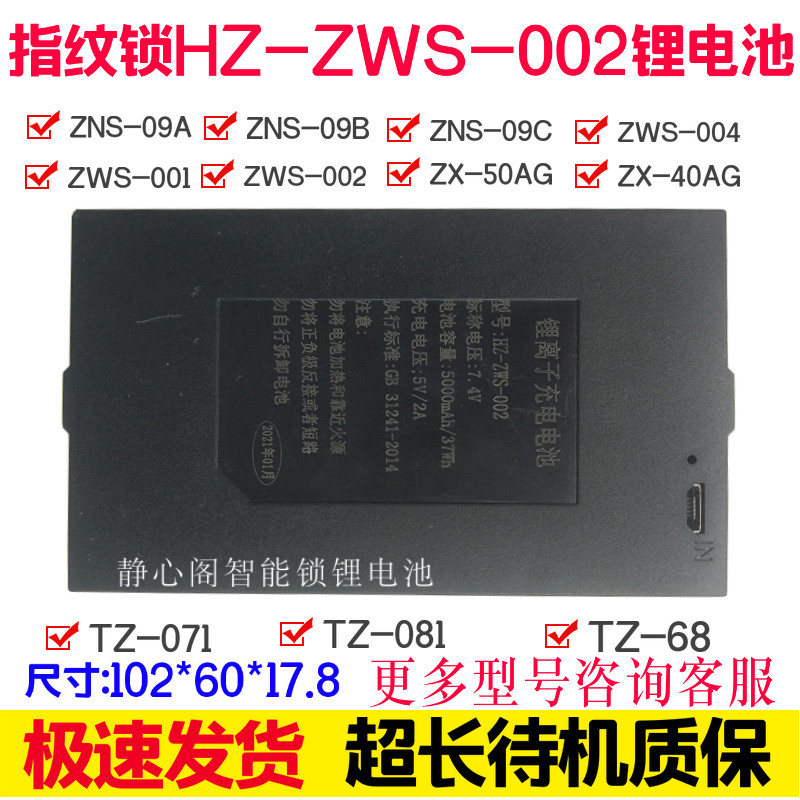 081电池ZWS 09可充电TZ 002 68锂电池专用锁ZNS 原厂指纹智能锁TZ