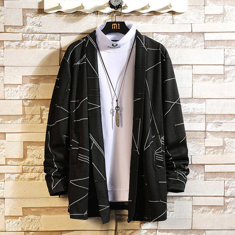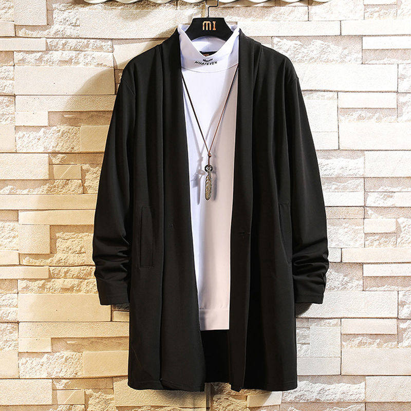 风衣套装 秋冬季 加厚宽松过膝韩版 领毛呢大衣男中长款 呢子外套 西装