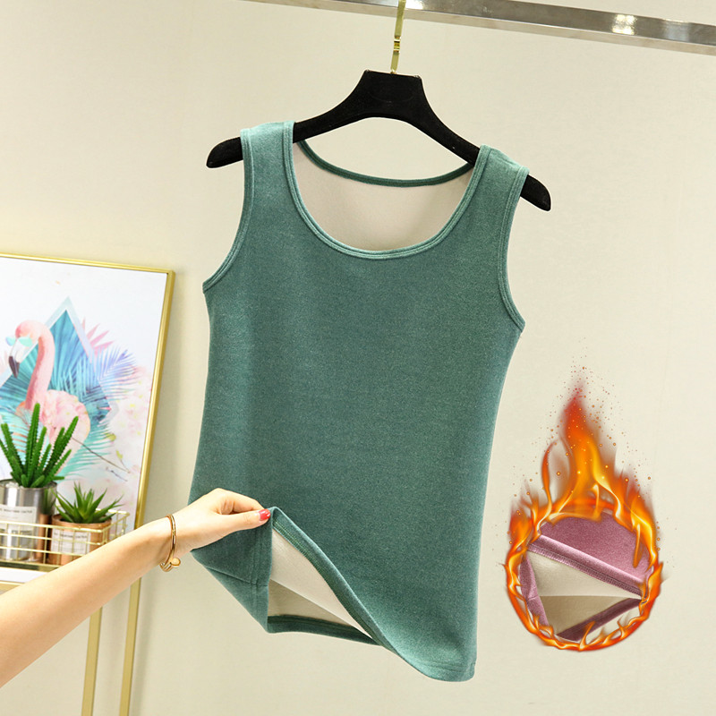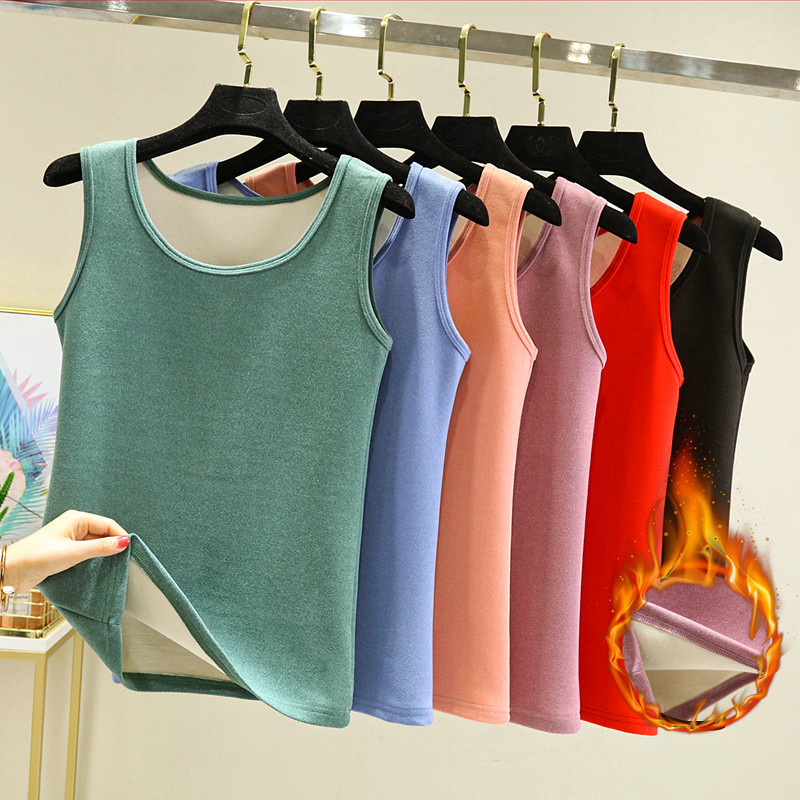 圆领保暖休闲上衣 打底衫 秋冬德绒保暖背心女加绒加厚修身 内搭无袖