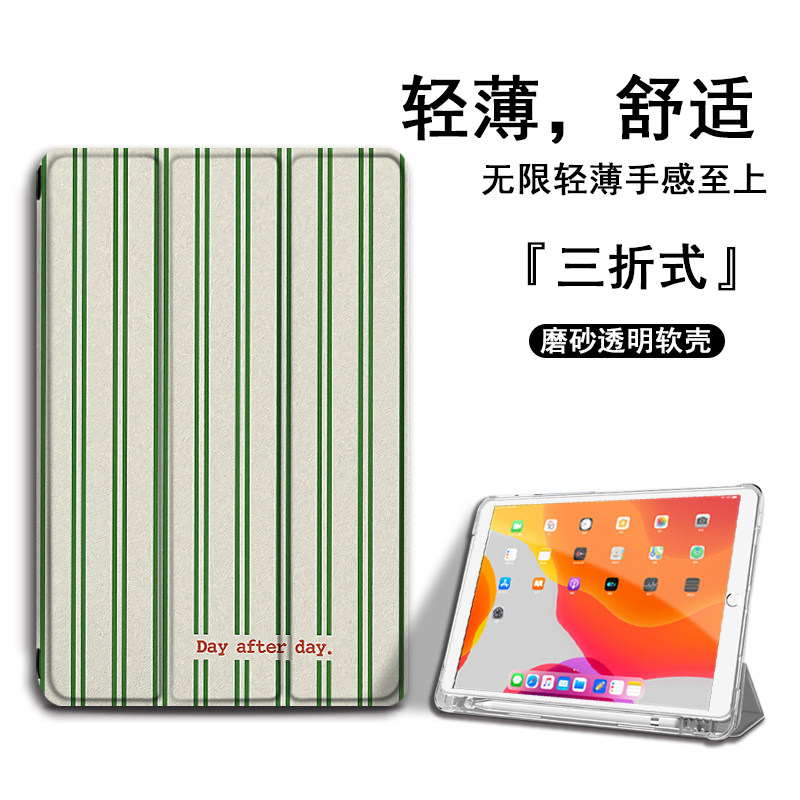 air4创意3壳2 19三折式 适用ipad2021绿色条纹9平板保护套pro11带笔槽mini6简约5苹果10.2简约9.7寸2020 18新款