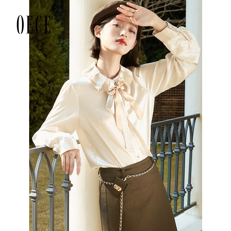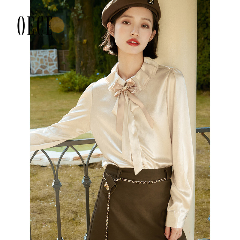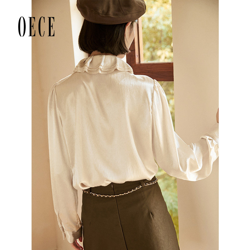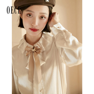 甜美小众衬衣春秋气质上衣 女装 Oece复古设计感衬衫 新款