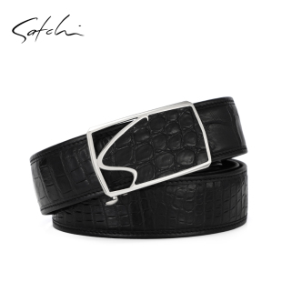 腰带 鳄鱼皮不锈钢自动扣正品 沙驰皮带男真皮休闲商务裤 带高端时尚