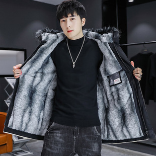 加绒加厚2025新款 冬季 冬装 中长款 羽绒棉服袄男潮流 外套棉衣男韩版