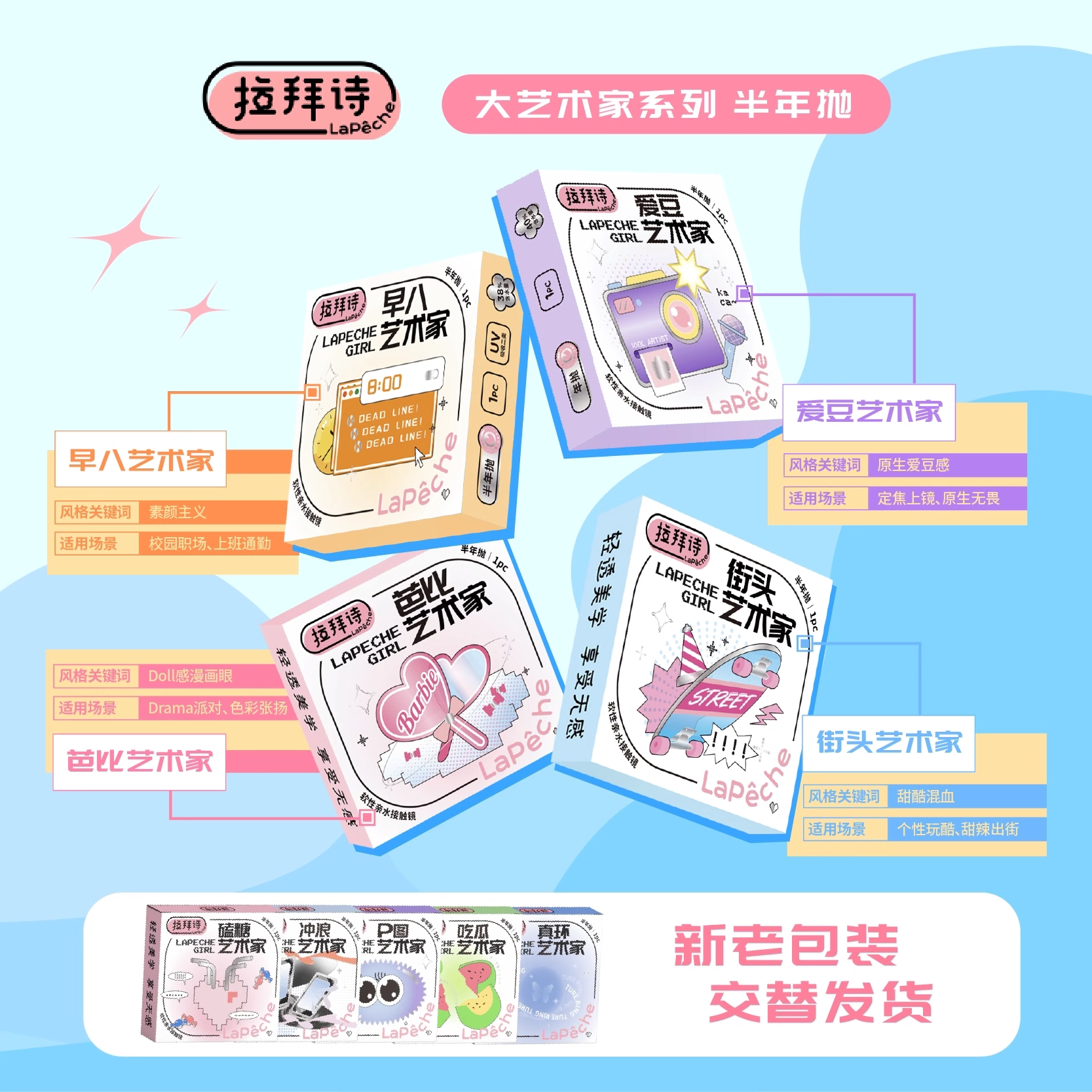 拉拜诗LaPeche大艺术家美瞳半年抛盒2片隐形近视眼镜小直径