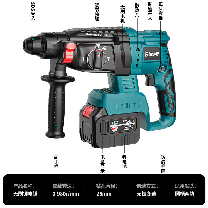 创一电锤电镐电钻冲击钻大功率混凝土电动工具家用轻型劈柴充电