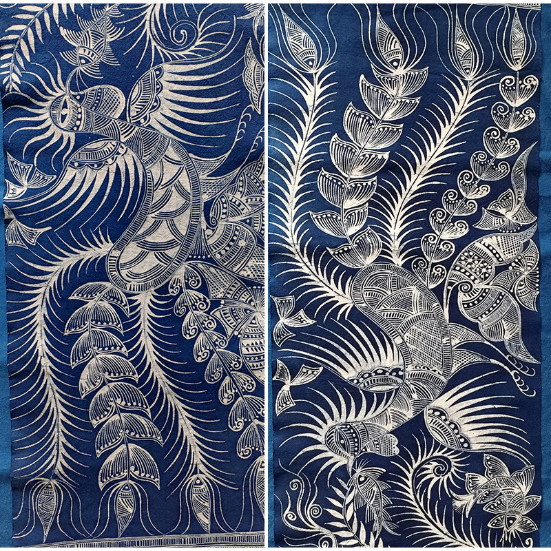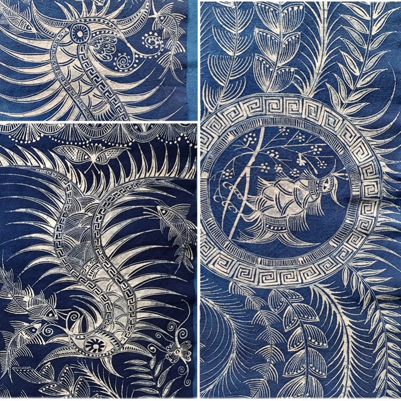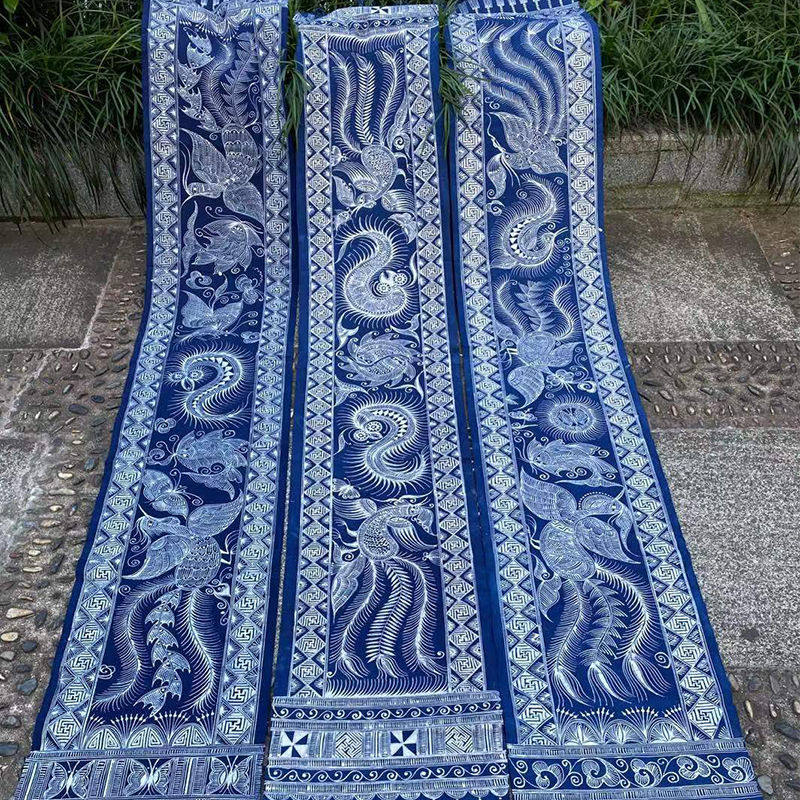 贵州特产苗族手工蜡染桌旗蜡染布料蜡染床尾旗苗族图腾植物蓝染