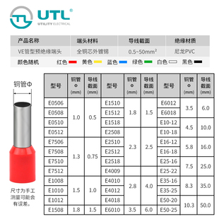 管型端子VE1508针形预绝缘端子线鼻子欧式 冷压接线端子针型压线
