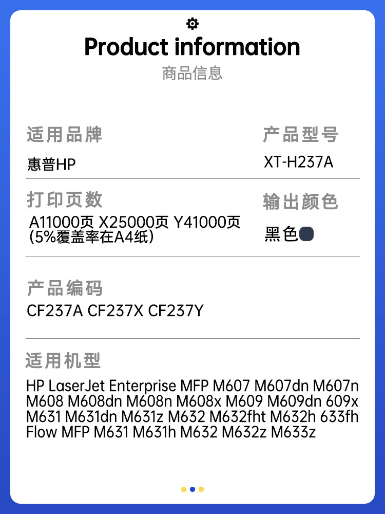 MFP Flow M632fht打印机墨盒37Y碳粉M633z晒鼓芯片 M609dn晒鼓M608x墨粉盒hp 兼容CF237A惠普M631z硒鼓M607n