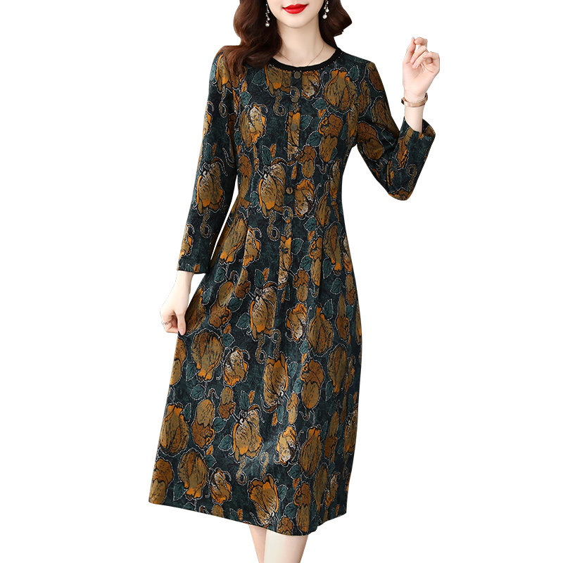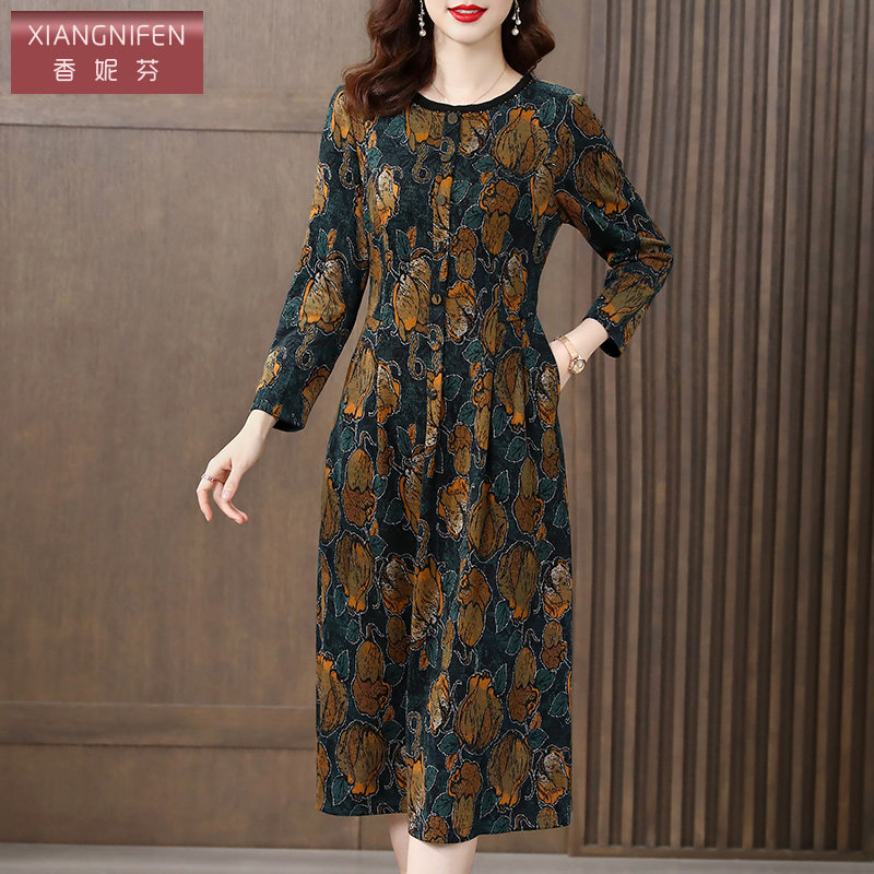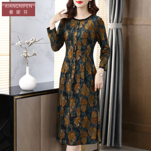 香妮芬高贵优雅中年妈妈休闲连衣裙女2026新款 春秋气质收腰羊毛裙