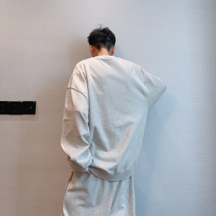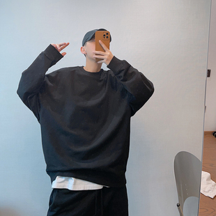dannyandzee春季 潮牌百搭纯色宽松330g毛圈棉套头情侣圆领卫衣男