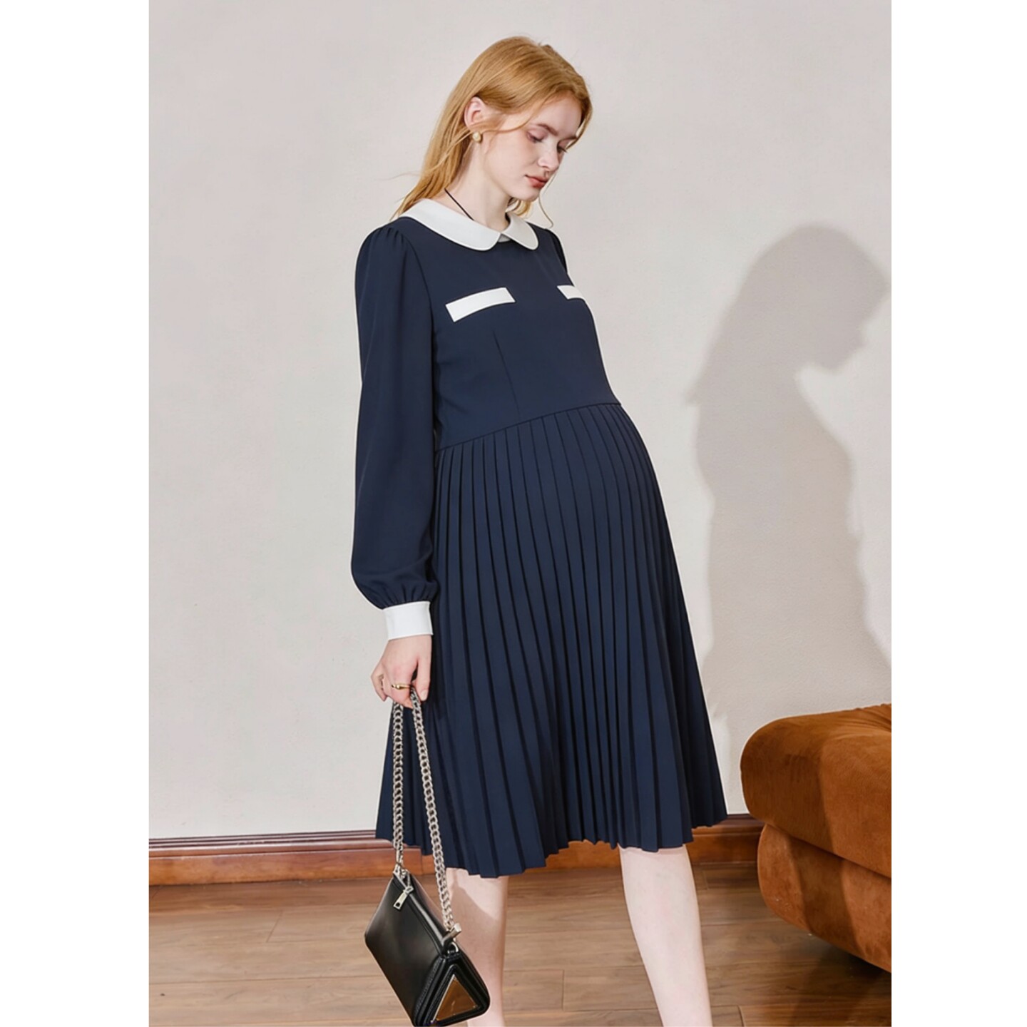通勤孕妇百褶连衣裙法式 面试连衣裙雪纺大码 春装 上班族孕妇职业装