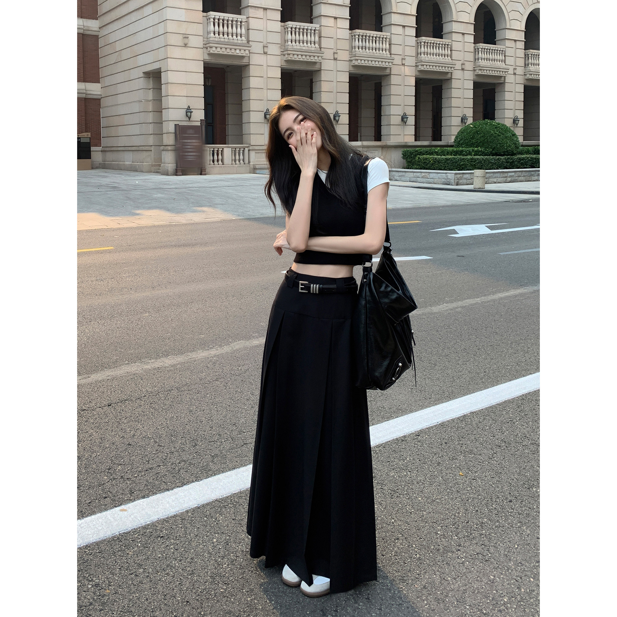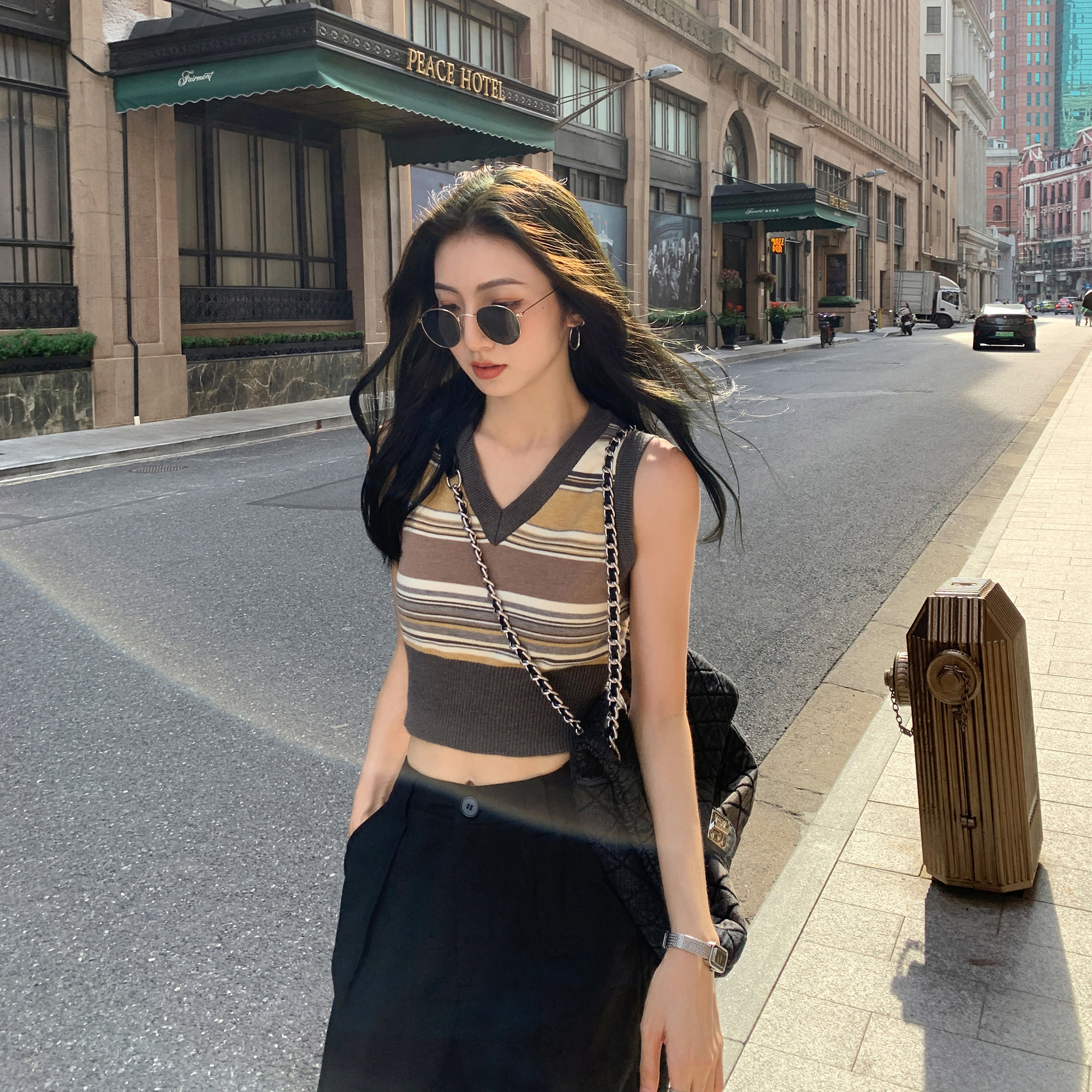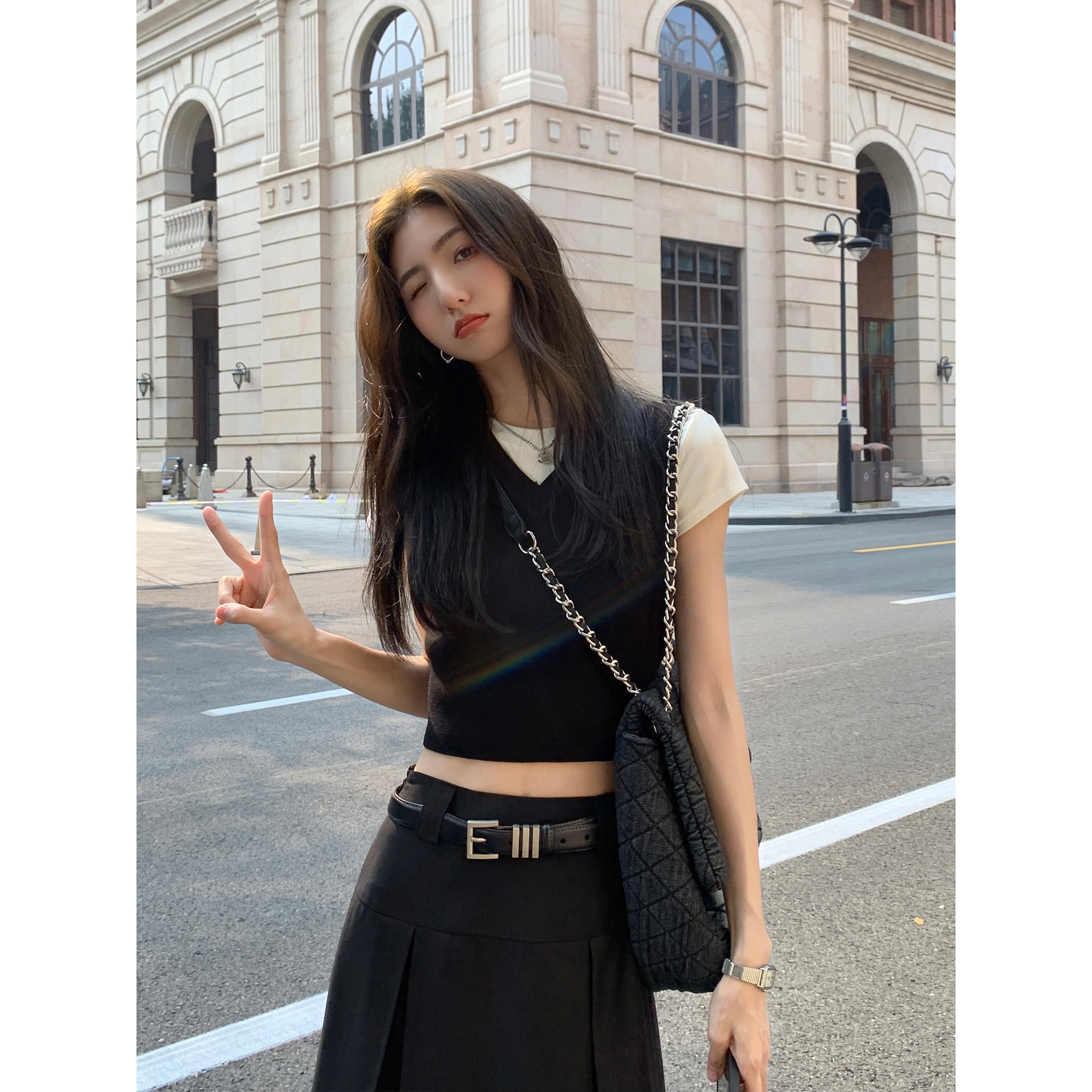 百搭修身 MULVAN 马甲背心女新款 v领针织衫 叠穿上衣 黑色短款